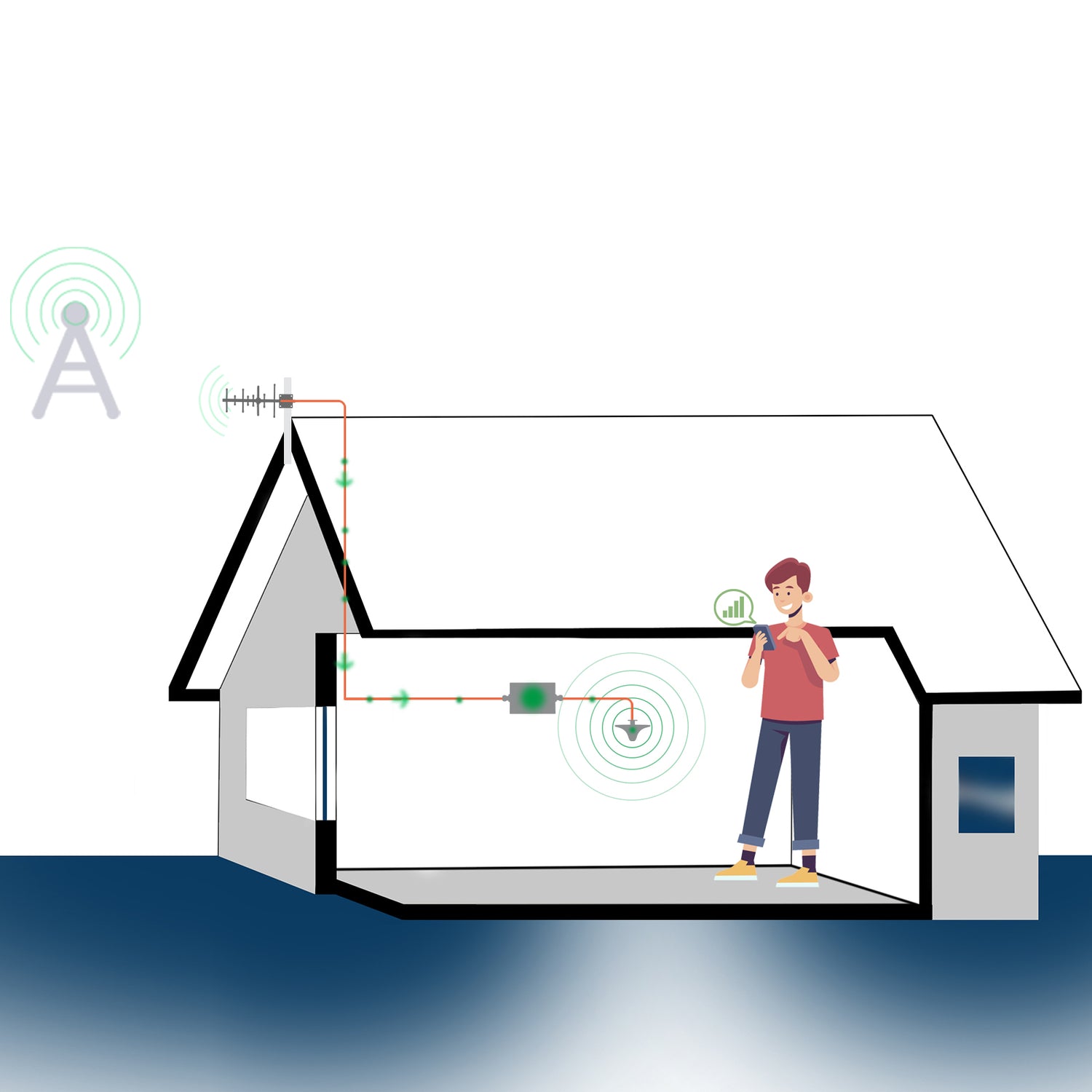 2.Outdoor antenna transmit received signal to repeater by coaxial cable, repeater amplifies and transmit it to indoor antenna
